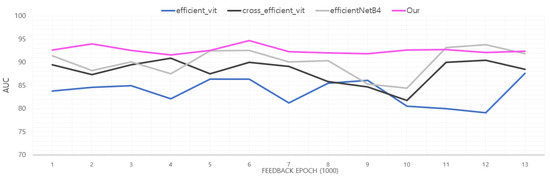 Graph of AUC change according to feedback epoch in integrated voting.