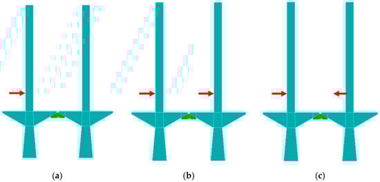 Different excitation methods; (a) exciting force; (b) excitation forces in the same direction; (c) excitation forces in the opposite direction.