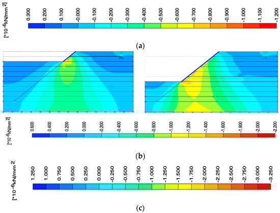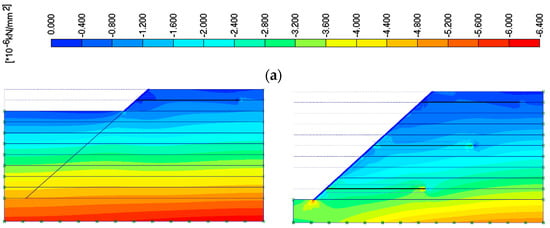 5.3. Horizontal Stresses on the Slope Face