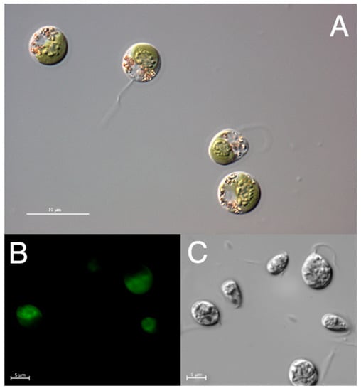 - Tran, D.; Vo, T.; Portilla, S.; Louime, C.; Doan, N.; Mai, T.; Tran, D.; Ho, T. Phylogenetic study of some strains of Dunaliella. Am. J. Environ. Sci. 2013, 9, 317–321. [Google Scholar] [CrossRef]