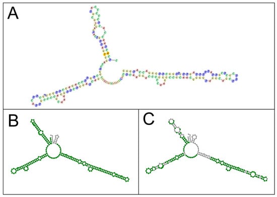 - Keller, A.; Förster, F.; Müller, T.; Dandekar, T.; Schultz, J.; Wolf, M. Including RNA secondary structures improves accuracy and robustness in reconstruction of phylogenetic trees. Biol. Direct 2010, 5, 4. [Google Scholar] [CrossRef] [PubMed]