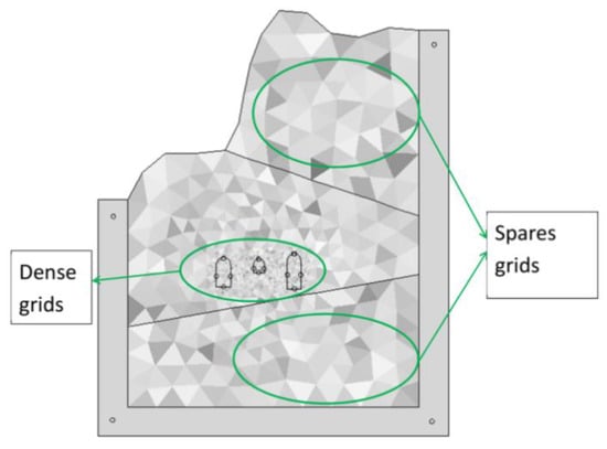 However, DDARF has a limitation in the process of model building, which is that it can only generate uniform grids, that is, it can either generate all the same fine grids in the whole model, or generate all the same sparse grids in the whole model, which greatly limits the use of DDARF, because considering the simulation accuracy, dense grids should be generated, and if all the grids are generated to be dense grids in the model, the number of grids in the model will be greatly increased, which will not only increase the calculation workload and reduce the calculation efficiency, but also may cause calculation errors and result in calculation failure; this limitation means that DDARF is unsuitable for large-scale geotechnical engineering [46,47]. Further, Ma et al. optimized DDARF. The optimized DDARF can generate heterogeneous grids and generate grids of any size in any area of the model, which could ensure calculation accuracy and improve calculation efficiency at the same time [45].