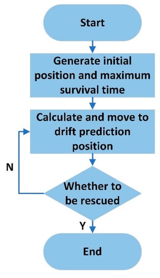 For medium/distant maritime rescue, it is worthy to predict the trajectories of the PDTs first. The drift trajectory can be influenced by winds, currents, and the physical properties of the PDT. Assuming that the ocean wind speed is , the ocean flow speed is , and the wind speed modification factor is . Then, for the maritime rescue mission, the drift speed of PDTs can be given by: