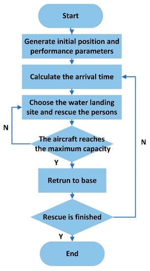 Compared to helicopters and ships, amphibious aircrafts can effectively solve the problems faced by helicopters and ships and meet the medium/distant maritime rescue demands because of their long cruise range, high speed, high rescue capability, and surface landing capability [,,,]. Therefore, this study on the amphibious aircraft applications for medium/distant maritime rescue is meaningful. Most of the current research on amphibious aircrafts has focused on the verification of a specific performance of the aircraft and exploratory design studies [,,,,]. There is still a large gap in research on the applications of amphibious aircrafts. The main application areas of amphibious aircrafts are in forest firefighting and maritime rescue []. For maritime rescue with amphibious aircrafts, Yang et al. proposed an optimal algorithm for searching routes of amphibious aircrafts, considering their flight characteristics and sea rescue capability []. Zhou analyzed the factors affecting the siting of amphibious aircrafts []. Du et al. established the amphibious aircraft selection decision model based on the improved fuzzy evaluation method []. Xiong et al. established a landing search and rescue risk assessment system for amphibious aircrafts. Based on the studied assessment system, they constructed the affiliation function of each index by the assignment method, and determined a fuzzy comprehensive evaluation process []. Wu not only used the k-means clustering algorithm, addressing the multi-amphibious aircraft rescue task assignment problem, but also used the ant colony algorithm for multi-aircraft rescue route planning []. However, there is no detailed study of the rescue process for amphibious aircrafts. Therefore, it is meaningful and necessary to carry out an in-depth study on the rescue process of amphibious aircrafts, which is the main motivation of this study. For medium/distant maritime rescue, one feasible way is the application of the mathematical methods for optimization. The application of the mathematical methods for optimization has been widely used in various fields, including transportation, military, economy, etc.