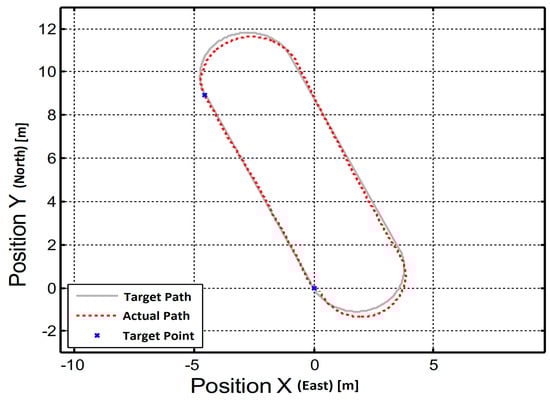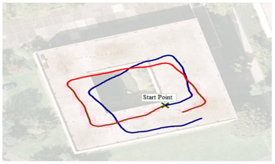 The last test shows how well the robot can travel a more complex path. This test was also carried out in the courtyard of the university campus. The robot had to drive straight ahead for 10 m and then return to its original point, but in doing so, it had to approximately assume the original orientation. The path definition is given in Table 3.