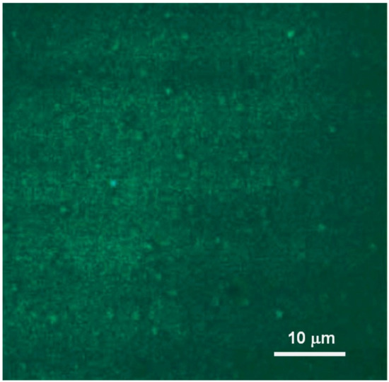 Bubston clusters can also be observed with a conventional optical microscope (see Figure 2); the photograph was taken in the dark field of a microscope. A 100 μm layer of water was uniformly illuminated with CW laser light at wavelength λ = 532 nm. Bright inclusions with vague boundaries are clearly seen against a dark background. It is obviously due to the fact that the optical density of these inclusions is less than the optical density of water. Indeed, according to the results of [14,30], the refractive index of bubston clusters in the visible range is nb = 1.26, while for water the refractive index is n = 1.33. An important feature of bubston clusters is the absence of a clear interphase boundary between the cluster and the surrounding liquid, in contrast to micron-sized gas bubbles. Indeed, as was shown in [32], bubston clusters are fractal objects; therefore, there is no geometric concept of an interface for such objects. This is why the diffraction patterns of visible light on the bubston clusters cannot be obtained.