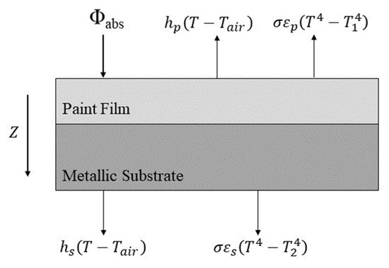 Changes in the coating temperature during curing impact the coating quality. Numerical simulation is an effective strategy for the visualization of heat transfer behavior in curing processes and their performance. Studies have used numerical simulation methods to investigate the thermal behavior of a drying process [24], an air conditioning plant paint-curing oven [25], a cranberry-drying process [26], a potato slice-drying process [27], and a household toast grill [28]. With regard to powder coating curing, L. Véchot and I. Bombard et al. coupled thermal simulations and curing process dynamics to develop a model for the prediction of the evolution of the coating temperature and the degree of conversion under electric infrared radiation [13,29]. However, no model has yet been reported for the prediction of the temperature changes in coatings under catalytic infrared radiation.