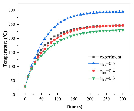 • An internal heat source was introduced in the simulation model. This model could accurately predict the temperature change in the coating. The total efficiency η tot was determined to be 0.4;