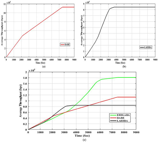Figure 6. Average Throughput. (a) Throughput of DARE; (b) Throughput of The LAEBA; (c) Throughput of the EEDLABA.