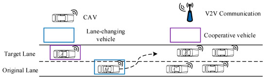 - All the CAVs involved in this work can share real-time information accurately and timely based on V2V communication [38]. It is assumed that there is no packet loss and communication delay during the process of information sharing.