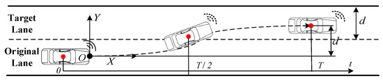 - Vehicle M is at the centerline of the original lane before making a lane change and is also at the target lane’s centerline after the lane change’s completion.