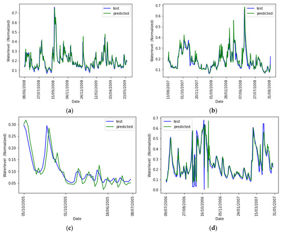 Dadaser-Celik and Cengiz [29] have predicted the monthly average water levels in Sultan Marshes in Turkey using a multi-layer perceptron-type neural network model. They have investigated the traditional relationship between climate data (rainfall, temperature, evapotranspiration) and hydrological data (groundwater levels, spring flow rate, and the previous month’s water levels). Although they have used several input parameters, including the last month’s water level, the selected NN type will not support better temporal relationship learning.