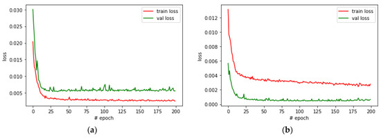 Both networks were implemented using the Python programming language. Prediction performance was measured using three indicators: R2 Score, MSE, and MAE. R2 Score is illustrated in Equation (13). The R2 Score can be determined as a ratio of the total variation of data points explained by the regression line (sum of squared regression) and the total variation of data points from the mean (also termed as the sum of squares total or total sum of squares).