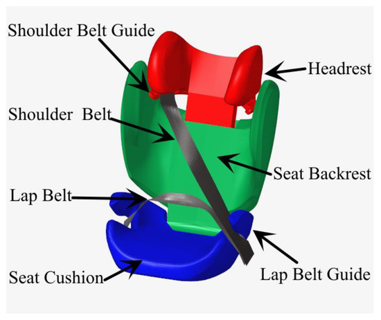 According to “Global Road Safety 2010–2018”, traffic accidents are the leading cause of death for 5–20 year olds [1]. In particular, regarding the safety of middle-aged and older children in vehicles, 3–11 year olds account for 42% of child occupant fatalities, with approximately 62% of children sitting in booster seats at the time of the collision [2,3]. The booster seat is a Child Restraint System (CRS) for middle-aged and older children and can significantly reduce children’s injuries during a motor vehicle crash. According to the Washington State motor vehicle crash data between 2002 and 2015 involving children aged 8–12 years, child occupants using booster seats were 29% less likely to be injured than those restrained only by seat belts [4].