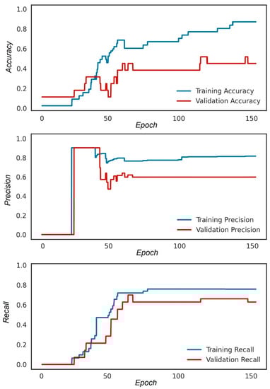Of course, the confusion matrix and loss function represent the predictive model’s validation during the learning stages, but for controlling the model’s performance, we used a statistical errors table that included the mean absolute error (MAE), mean square error (MSE), and root mean square error (RMSE). These error tables are frequently used to measure the differences between the predicted values generated by a model and the measured values obtained by tests [40]. Generally, a lower number of computational errors indicates a better algorithm performance [28].