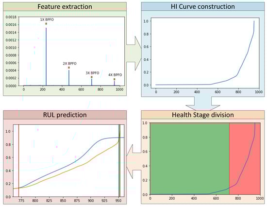 Much research effort in the field of RUL prediction has been made in the last decade. Although there is no standardized procedure, most of the related works divide RUL prediction into four steps: feature extraction, health indicator construction, health stage division, and RUL prediction.