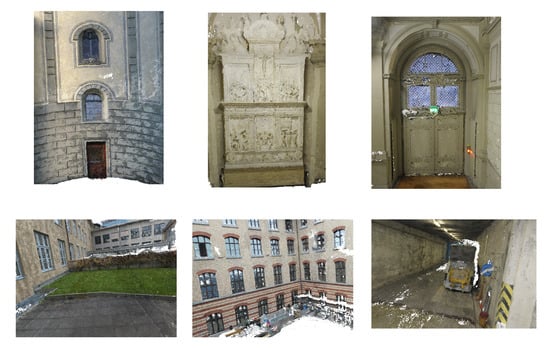 - Tola, E.; Strecha, C.; Fua, P. Efficient large-scale multi-view stereo for ultra high-resolution image sets. Mach. Vis. Appl. 2012, 23, 903–920. [Google Scholar] [CrossRef]