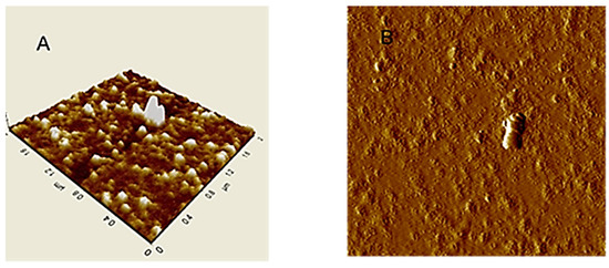 An image of HA particles (extracted from Leonardite) adsorbed on mica surface is shown in Figure 2A. AFM images in tapping mode of HA aqueous dispersion absorbed on mica, showed separated small globular particles with sub-micron size [97]. In the isolated particle cluster (Figure 2B) continuous HA layers, in ring format, were observed.