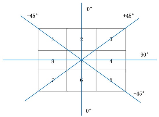 - For a horizontal edge, its gradient is vertical, and the gradient direction angle satisfies: ; for a 135°edge, its gradient is 45°, and the gradient direction angle satisfies: ; for a vertical edge, its gradient is in the horizontal direction, and the gradient direction angle satisfies:; while for a 45° edge, its gradient is 135°, and the gradient direction angle satisfies: .