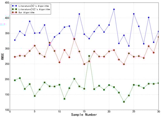In order to measure the performance in accuracy between the pavement crack repair trajectory fitted by the algorithm and the real crack feature, the RMSE metric is selected as the evaluation metric of the algorithm fitting effect. By calculating and comparing the RMSE values between the labeled ground truth and the fitted trajectory lines in the sample crack image, the accuracy of each algorithm can be comprehensively analyzed, and the results are shown in Figure 19.