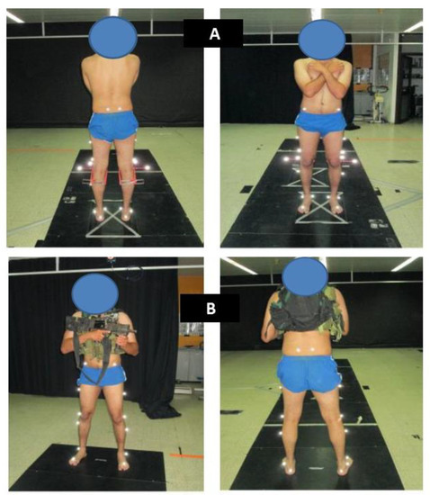 Markers on the subject’s body: (A) without load, (B) with load.