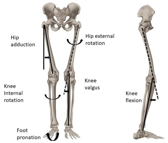 Kinetic and kinematic studies have shown that individuals with PFPS exhibit altered gait parameters compared with healthy individuals, i.e., a reduction in cadence, decreased velocity, slower swing velocity and shorter step length [9,12]. Individuals with PFPS exhibit a reduction in knee flexion angle, a lower knee extensor moment, an increased knee abductor moment and an increased knee external rotation moment. These changes probably occur in order to reduce loading on the painful patellofemoral joint and might be the outcome of the individual to avoid pain [12,13,14]. Furthermore, it has been found that individuals with PFPS have decreased hip muscle strength, increased hip adduction and knee abduction and greater peak internal rotation movement [15,16,17,18,19]. Moreover, larger Q angles of the knees or greater knee valgus have been associated with patella-femoral instability, patellofemoral arthritis and lower hip muscle torque and lower function [20,21].