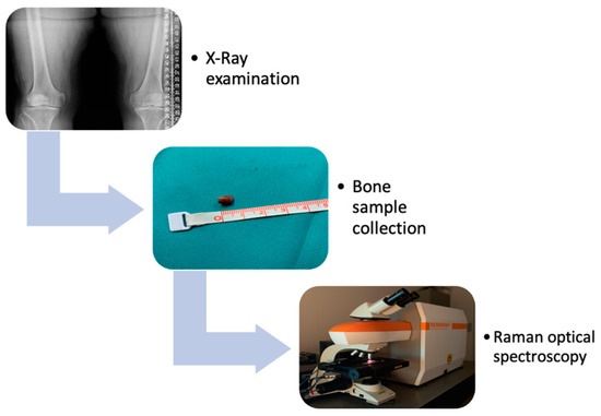 - Buchwald, T.; Niciejewski, K.; Kozielski, M.; Szybowicz, M.; Siatkowski, M.; Krauss, H. Identifying compositional and structural changes in spongy and subchondral bone from the hip joints of patients with osteoarthritis using Raman spectroscopy. J. Biomed. Opt. 2012, 17, 017007. [Google Scholar] [CrossRef]