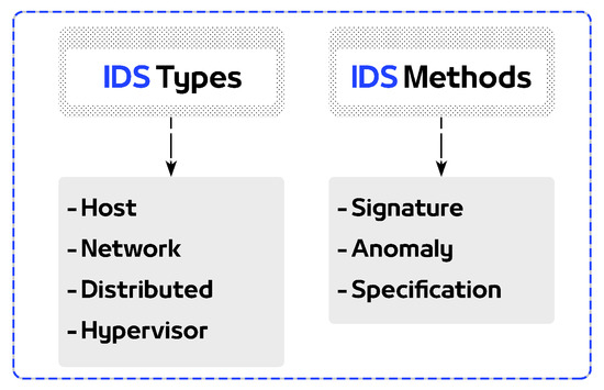 - Hypervisor IDS: The hypervisor IDS was created to run a virtual machine (VM), which observes communication between the VM and hypervisors. This type has the advantage of providing state information and event monitoring [16].