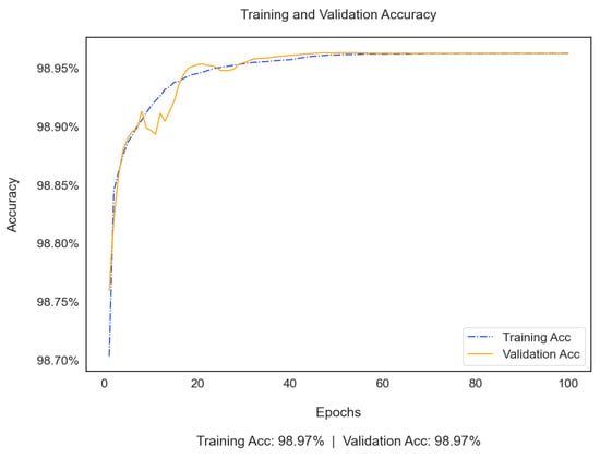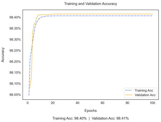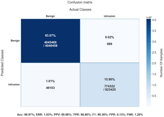 The authors used two models based on DNN and DNN with principal component analysis (PCA). Furthermore, they used one-hot encoding and min–max scaling in the data preprocessing phase. They reduced the training time by half while maintaining the accuracy rate using DNN-PCA with only 12 features from the dataset. The training–testing ratio was 80%-20%. From the confusion matrix in the results, we can quickly achieve the highest accuracy of 97.93%, with a precision of 99.97% and a recall of 97.42%. A disadvantage was the absence of performance scores covering the multi-class classification.