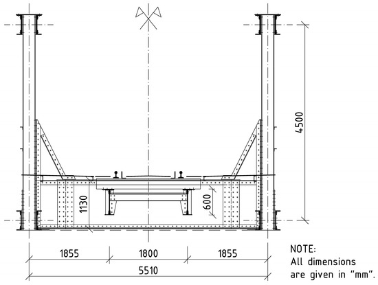 The bridge superstructure with a width of 5.510 m consists of two main truss girders with a theoretical height of 4.500 m. The length of one field of the truss structure is 4.340 m. The open member bridge deck is created with stringers with a length of 4.340 m and cross girders. The global depth of the riveted plate-girder stringer is 600 mm, and it is created with a web made of P 14 × 586 mm and flanges made of angles L 100 × 100 × 14 mm. The riveted cross girder of 1130 mm high is created with a web made of P 14 × 1100 mm, flanges made of angles L 140 × 140 × 14 mm and a sheet P 15 × 320 mm.