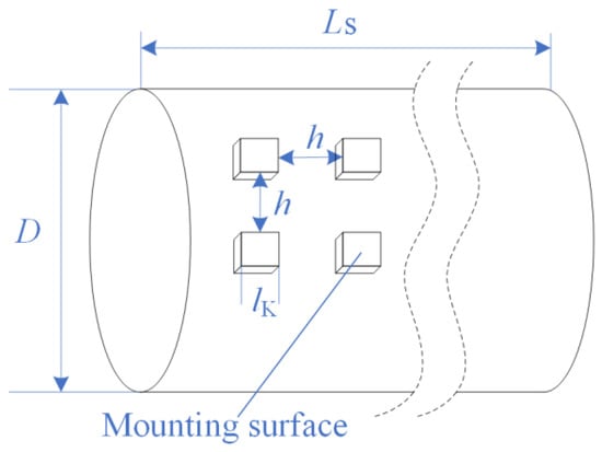 It is assumed that the installation surface of the large cabin body to be processed is square, and the side length is lK, and the installation surfaces are evenly distributed on the outer surface of the cabin body with the spacing h. LS is the length of the large cabin body, D is the diameter of the large cabin body (as shown Figure 3), lR is the length of the working space side of the manipulator (regarded as a cube, and lR/lK > 1).