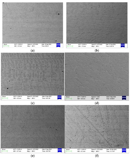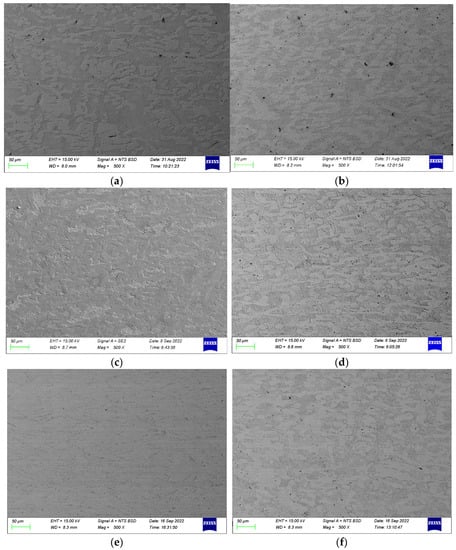 To determine if there is a significant influence of deformation parameters on the hardness of the alloys, Vickers hardness testing was conducted using an FM 700 microhardness tester in accordance with ASTM E 92-17 [16]. The indentation was obtained by using a load of 500 gf and a dwell time of 15 s. An average hardness was computed from five measurements taken at random spots on each sample.