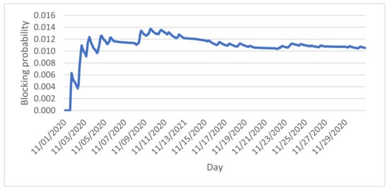 The natural estimator for the steady-state blocking probability, B(t), is based on admission observations over a time interval [0, t], which, in our case, is the month of November 2020:
