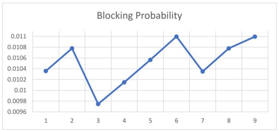 The complexity of the algorithm lies in Step 2, which calculates the blocking probability with iterations by Equation (2); each step takes O(1) time, and there are at most K steps. Then, the complexity of step 2 is O(.) Calculations of the utilization in Step 3 and of the total cost at Step 4 are of O() complexity. Steps 2–4 are repeated at most K1 times, which in the worst case results in O time.