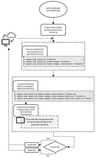 Data mining techniques are often used in the field of knowledge acquisition from unstructured data, especially when hidden relationships need to be discovered to support decision-makers [2]. For instance, to shorten the duration of the quality control process, historical data analysis allows us to improve inspection policies. Currently, the definition of quality controls is mainly led by international standards, such as the UNI ISO 2859-1:2007, for the identification of the acceptable quality level (AQL) for lots received from suppliers to be controlled [3]. This approach leads to the use of static parameters, which are not well-suitable for fast-changing scenarios. In order to achieve the required AQL, researchers suggest that quality management should also be evaluated relating to economic aspects, production management and maintenance management, basing the sample size on a dynamic definition [4]. Hajej et al. [5] considered the latter aspect taking into account failure rates, production efficiency and machinery remaining useful life, while Samohyl [6] introduced hypothesis testing to identify the best sampling strategy considering the perspective of consumers and producers.