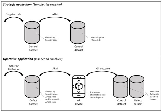 In the strategical application of the framework, the supplier code is the information needed to perform the ARM in order to eventually revise the current sample size as output. On the other hand, during the daily inspections, the order reference and the control lot need to be acquired, with the related information about the supplier and the article to be controlled. Once each quality check is performed, its outcome is registered on the dataset.