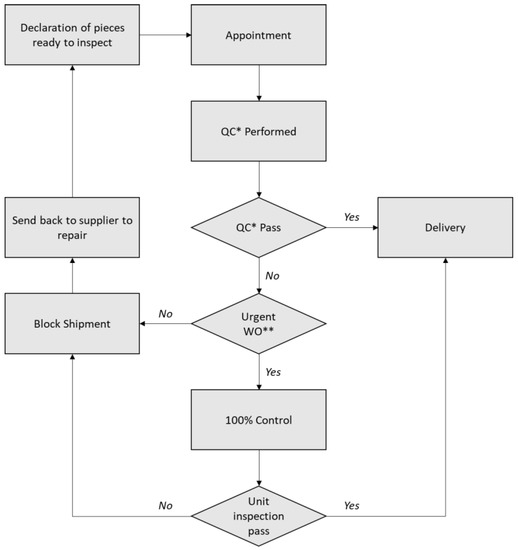 Quality control process for the analyzed company (* QC = Quality Control, ** WO = Work Order).