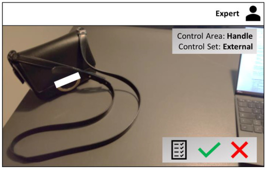 More in detail, both the user types will see, first, the updated sample size for the control order selected. The number of articles from the order requiring quality control, indeed, is defined according to the strategical redefinition of the sampling rules through the ARM. Secondly, the areas to be controlled are shown on the screen one by one and ordered according to the defect occurrence. All controllers can also access the control set description by clicking on the related icon on the screen (i.e., the list icon in Figure 4 and Figure 5).