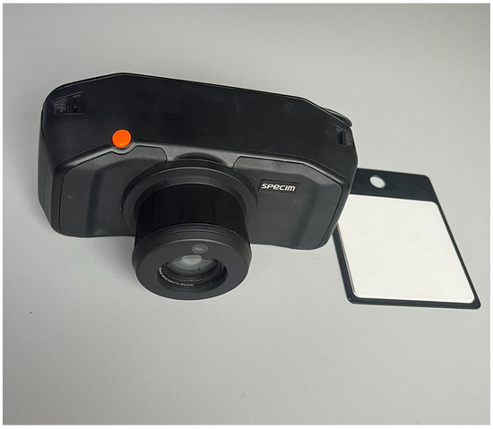 The GLCM (Gray level co-occurrence matrix) analysis, a method of quantitative analysis of the skin texture, was also used to analyze the dyes images. The method determines the spatial relation between examined pixel and its adjacent pixels. It provides information about the frequency of occurrence of certain pixels characterized by the same brightness at a certain distance from each other. The parameters describing the GLCM matrix include the distance and angle between the evaluated pairs of pixels. The GLCM analysis was carried out after normalizing the image using Adobe Photoshop Lightroom Classic 2018 8.1 software. The purpose of the normalization was to extend the gray levels from 0 to 255, where 0 means white and 255 means black [24,25,26]. The hyperspectral camera with gray panel is shown in Figure 3, and it allows the measurement of absolute reflectance.