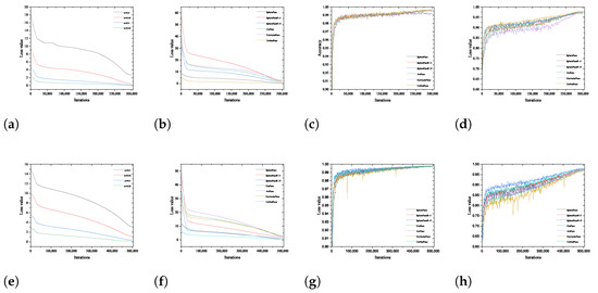 In addition, the comparison of UnifiedFace with the popular loss function in recent years in terms of loss value change during training is given. Both Figure 7b,f show that UnifiedFace has the most stable loss value change process and the smallest convergence value during the training process. Meanwhile, there is no large and drastic loss change during the training process. The accuracy comparison of UnifiedFace with popular loss functions in LFW and CFP_FP validation datasets during training is shown in Figure 7c,h, respectively.