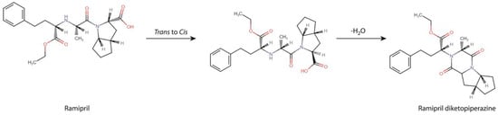 - Regulska, K.; Musiał, J.; Stanisz, B.J. Solid-State Stability Profiling of Ramipril to Optimize Its Quality Efficiency and Safety. Pharmaceutics 2021, 13, 1600. [Google Scholar] [CrossRef]