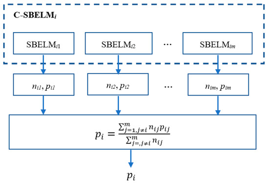 The training set of each single fault mode that is used to train the two-class classifier SBELMij may be unbalanced. Considering the positive correlation between the amount of single-failure samples and the corresponding occurrence probability, the sample size of the training set is taken as the weight coefficient of fusion to generate the fusion result: