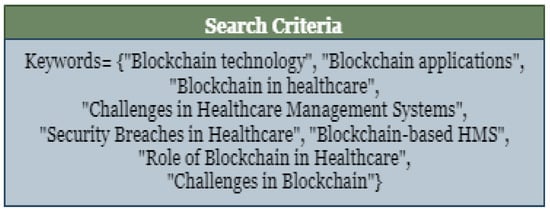 Search has been conducted using keywords such as “Blockchain technology”, “Blockchain in Healthcare”, and many other related keywords, as shown in Figure 2.