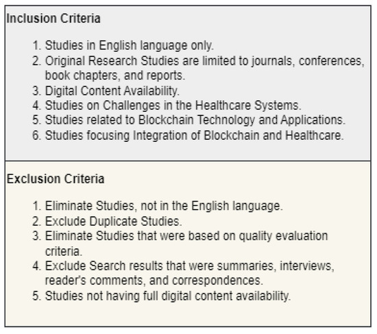 Based on the search keywords given in Figure 2, an inclusion-exclusion criterion has been followed in this paper. Figure 3 draws a line between inclusion and exclusion criteria used for the screening and selecting studies for this paper.