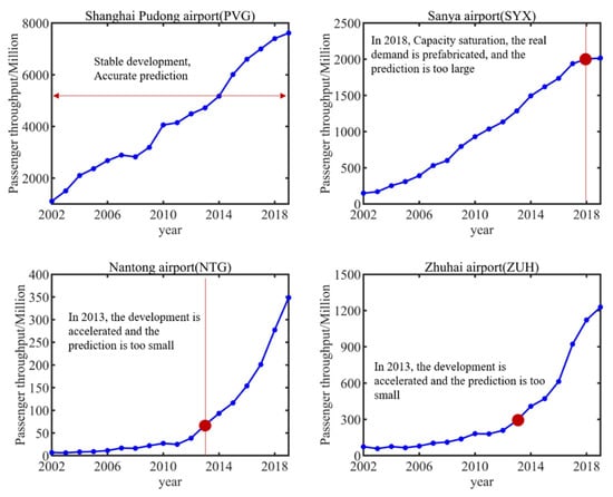 An accurately predicting result of passenger throughput for an airport is one of the most important factors for its development decision on construction and expansion. A larger predicted result will inevitably lead to a waste of resources such as untimely land occupations, idle facility constructions and lower returns on investments. When the prediction result is too small, the crowded airport terminal may bring about poor travel experiences as well as higher security risks. Therefore, conducting accurate predictions will effectively avoid economic losses caused by inappropriate decision-making during airport development [].