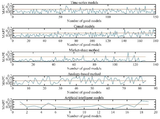 where ε is the maximum MAPE that can be accepted. Usually, when eit ≤ 10%, the models are regarded as good models. When eit > 20%, the models are believed to be failure models.