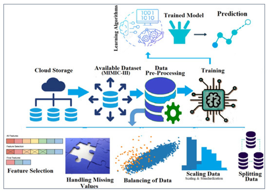 MIMIC-III is a publicly available dataset [39]. Data were gathered from a variety of sources, including critical care information system archives, databases of electronic medical records in hospitals, death master file of the social security administration. This is a huge, centralized database containing patient’s related information admitted to the special care center. The dataset has vital signs, medications, laboratory measurements, observations and notes that are recorded by physicians, fluid balance, codes of procedure, codes of diagnosis, reports in the form of images, the interval of staying in hospital, data for survival, etc.