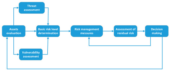 Every business is regularly exposed to the risk of unexpected, unpredictable information security events that can cause financial losses and significant damage to a company’s infrastructure or reputation. The risk management process reduces both the likelihood of potential security incidents and their impact on existing business processes. Effective risk management is aimed at optimizing the company’s success (including financial success) by minimizing threats [10,11,12,13].