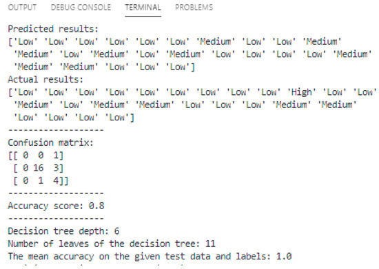 The effectiveness of the proposed solution is 80%, which demonstrates a high level of accuracy of the model in the tasks of intelligent evaluation and classification. In addition, it takes into account a wide range of metrics (67 informative parameters for a dataset with 13,520 records), which allows us to fully assess the state of security of information assets in view of ensuring the main properties of information (confidentiality, integrity, and availability), has correlation to MITRE ATT&CK and CVE, and has full compliance with core standards and guidelines in the field of IS risk analysis and assessment (ISO/IEC 27001, ISO/IEC 27005: 2018, NIST 800-30, etc.).