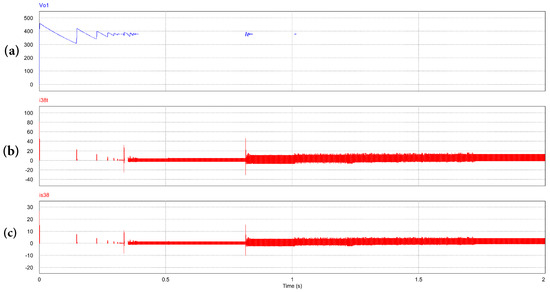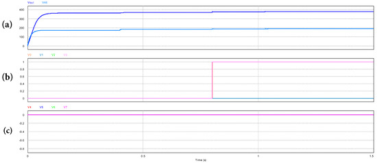 In a detailed way, and are bits associated with the DC–AC full bridge converters condition, particularly when perform in rectifier mode as source PEC. If one of them passes the initial test or stays in on mode then , else, if not passes the initial test or stays in off mode. and are bits associated with the step-up DC–DC full bridge converters at the ESSs, in batteries discharge mode. If one of them passes the inicial test or stays on mode , else, if not passes the initial test or stays in off mode. Finally, , , and are bits associated with the boost converters condition, specially when performs in regulation mode. If , PEC is able to operate or stays in on mode, else, if not able to operate or in off mode.